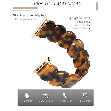 Thông tin sản phẩm Heesch Tortoise Stretchy Watch Band Compatible with Apple Watch Serise Ultra/SE/8/7/6/5/4/3/2/1, Resin Cute Watch Strap Wristband for iWatch Bracelet for Women Men Girls, 38/40/41mm, 42/44/45/46/49mm, Oval Version