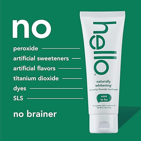 Thông tin sản phẩm hello Naturally Whitening Fluoride Toothpaste, Natural Whitening Toothpaste with Coconut Oil and Tea Tree Oil, Tames Bad Breath, Helps Moisturize, and Fights Cavities, Mint, 3 Pack, 4.7 Oz Tubes