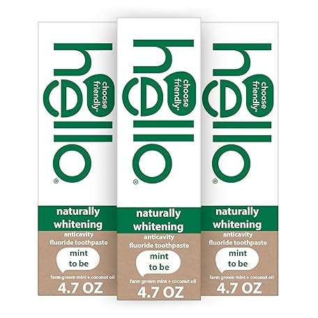 Sản phẩm hello Naturally Whitening Fluoride Toothpaste, Natural Whitening Toothpaste with Coconut Oil and Tea Tree Oil, Tames Bad Breath, Helps Moisturize, and Fights Cavities, Mint, 3 Pack, 4.7 Oz Tubes đang được bán với giá ưu đãi là $16.3173 tại nước Mỹ.