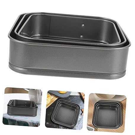 Hemobllo 3PC Square Non Stick Cake Molds Carbon Steel Honeycomb Live Bottom Baking Tray for Home Parties Weddings Black Bakeware