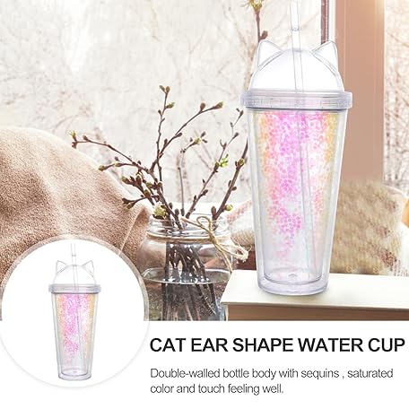 Sản phẩm Hemoton Water Tumbler with Straw Lid Double Layer Insulated Water Cup Glitter Bottle Beverage Cup with Cat Ear Lid for Kid Childern Adult 420ml(Random Color) đang được bán với giá ưu đãi là $21.8981 tại nước Mỹ.