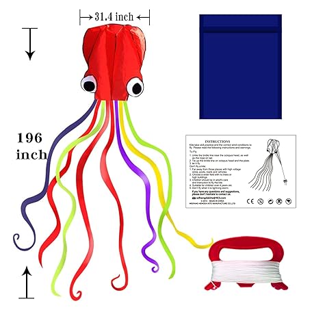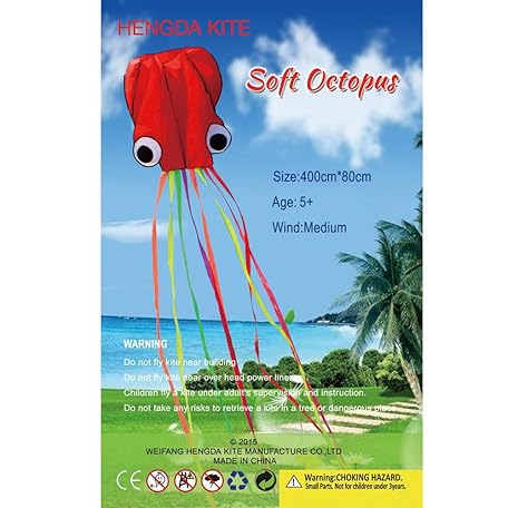 Thông tin sản phẩm Hengda Kite Soft Octopus Kite Series, Beautiful Kite with Long Colorful Tail for Kids and Adults, Easy to Fly Beach Kites, Excellent Outdoor Games and Activity Toys, Suitable for Beginners.