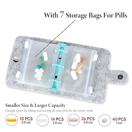 Thông tin sản phẩm Hennaja Pill Organizer,Pill Pouches Clear Plastic Pill Bags Self Sealing Travel Medicine Organizer Storage (2-Peach Blossom, 2 Pack)