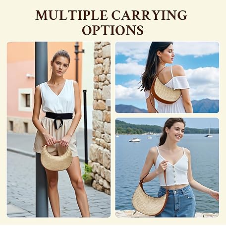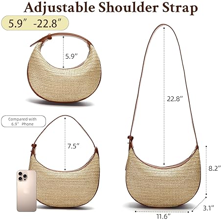 Herald Straw Crossbody Bag for Women Beach Woven Hobo Handbag Summer Chic Crescent Shoulder Purses with Adjustable Strap