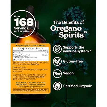 • Herb Pharm Oregano Spirits Extract and Essential Oil Blend for Immune Support* - 4 Ounce