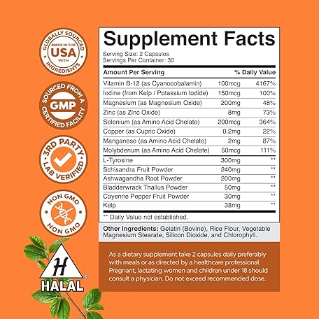 Thông tin sản phẩm Herbal Thyroid Support Complex - Potent Kelp Iodine Supplement with L Tyrosine, Bladderwrack, Selenium & Pure Ashwagandha for Hormone Balance - Mood & Energy Dietary Pills - 60 Capsules