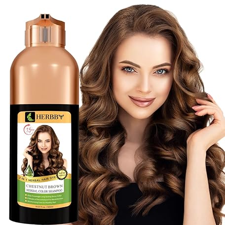 HERBBY Gray Hair Coverage Shampoo & Conditioner - Color Transform with 9 Herbal Extracts, Long-Lasting (6-8 Weeks), Shiny, Even Coloring, Instant Hair Dye, 500 ml (CHESTNUT BROWN)