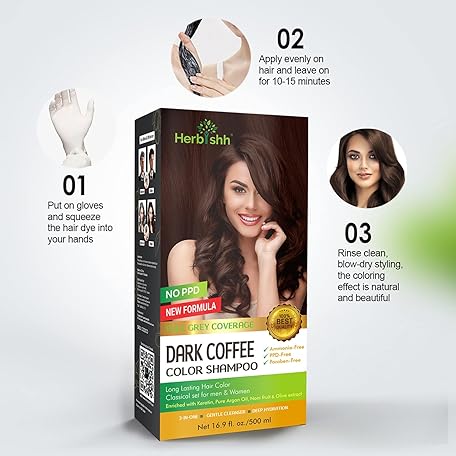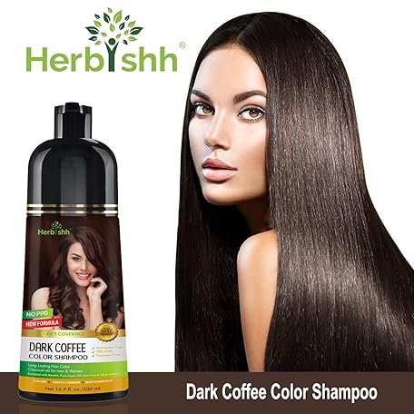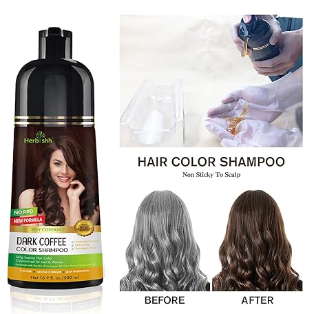 • Herbishh Hair Color Shampoo for Gray Magic Dye Colors in Minutes Long Lasting 500ml 3-In-1 Color Ammonia-Free (Dark Coffee)