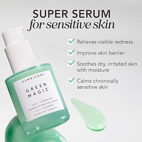 Sản phẩm HERBIVORE Green Magic Cica + Ceramides – Fast-acting Redness-Reducing Serum for Sensitive Skin, Plant-based, Vegan, Cruelty-free, 30mL / 1 oz đang được bán với giá ưu đãi là $52.32 tại nước Mỹ.