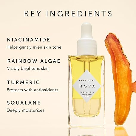 HERBIVORE Nova Facial Oil - Bi-Phase Oil with Tumeric + Niacinamide, Serum and Oil in one, Plant-based, Vegan, Cruelty-free, 50 mL / 1.7 oz