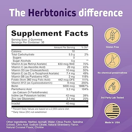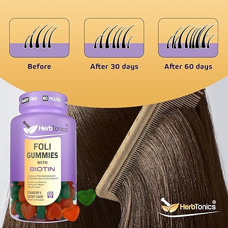 Herbtonics Foli Biotin Gummies with Hair Vitamins | Hair Growth Supplement for Women & Men | Hair, Skin and Nails Vitamins Sugarfree Gummies for Women | 60 Count