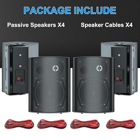 Thông tin sản phẩm Herdio 5.25 Inches 600 Watts Passive Indoor Outdoor Speakers Wired Waterproof,Wall Mount Speakers with Loud Volume Suitable for Patio,Garden Home Theater,Black (2 Pairs)