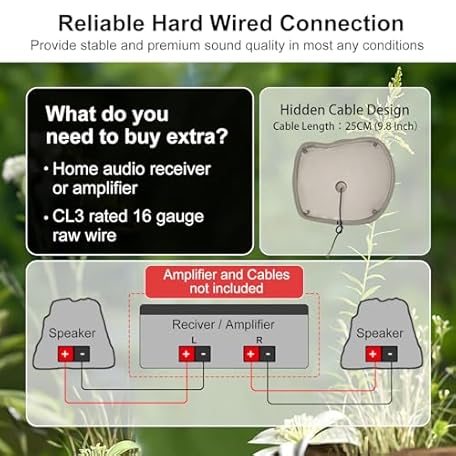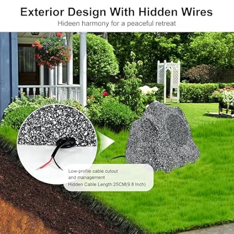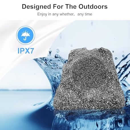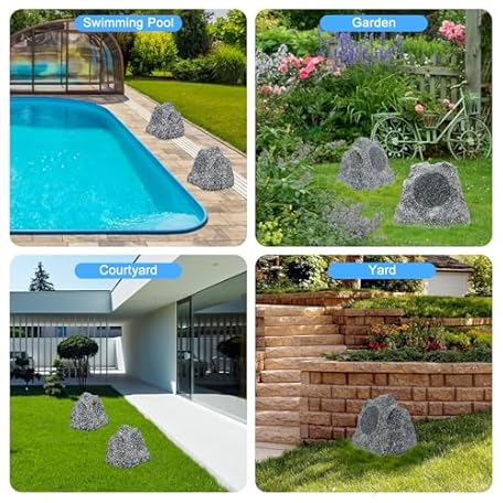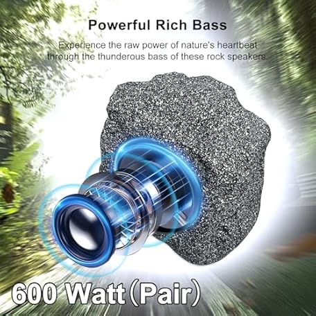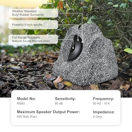 Herdio 8" Outdoor Rock Passive Speakers 600 Watt,IPX7 Waterproof,Hardwired, for Pool,Garden,Deck,Outdoor Activities (Black,Pair)