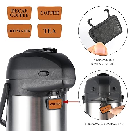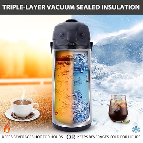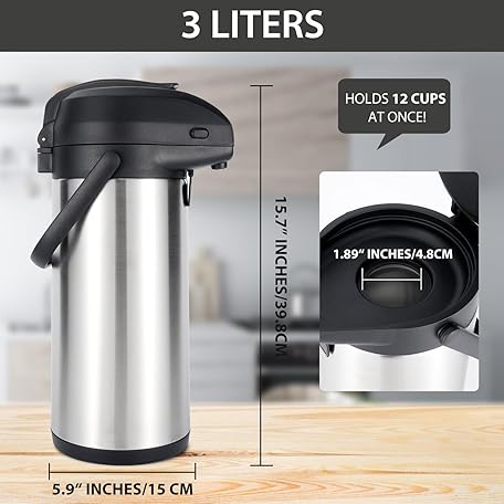 Thông tin sản phẩm Heritage66 3L Airpot Thermal Coffee Carafe with Cleaning Brush, Triple Wall Vacuum Insulated Stainless Steel Coffee Dispenser, 101oz Pump Pot for Hot & Cold Drinks