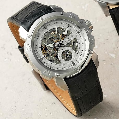 Thông tin sản phẩm HERITOR Conrad Automatic Watch for Men – 42mm Men’s Skeleton Watch with Jeweled Automatic Movement, 316L Stainless Steel Case, Croc Leather Strap, Sapphire-Coated Mineral Crystal