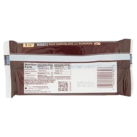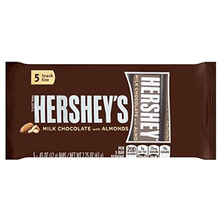 Sản phẩm Hershey's Milk Chocolate with Almonds Snack Size 5 x .45 oz (2.25 oz) đang được bán với giá ưu đãi là $10.8891 tại nước Mỹ.