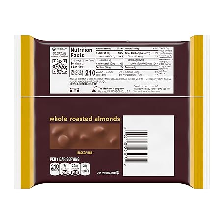 Thương hiệu HERSHEY'S là cái tên nổi tiếng được rất nhiều khách hàng trên thế giới chọn lựa. Với kiểu dáng đẹp mắt, sang trọng, sản phẩm HERSHEY'S Milk Chocolate with Whole Almonds Candy Bars, 1.45 oz (6 Count) là sự lựa chọn hoàn hảo nếu bạn đang tìm mua một món cho riêng mình.
