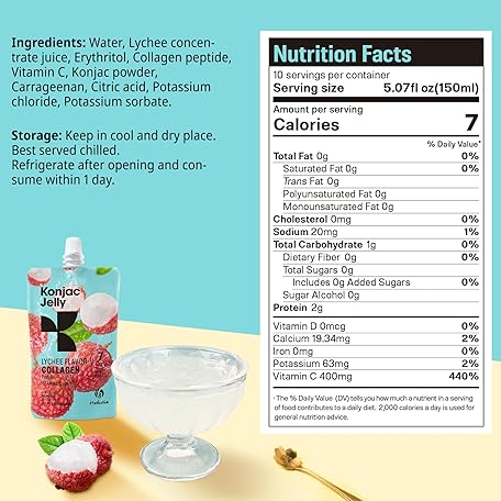 Thông tin sản phẩm Hethstia Konjac Jelly, Lychee Konjac Jelly 10 Pouches with Collagen Peptides, Low Calorie Drinkable Litchi Jello, Vitamin C Light Snacks, Sugar Free, Keto, Gluten-Free, Healthy Food Gifts