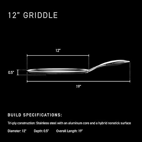Thông tin sản phẩm HexClad Hybrid Nonstick 12-Inch Griddle Pan, Stay-Cool Handle, Dishwasher-Friendly, Oven-Safe Up to 900°F, Induction Ready, Compatible with All Cooktops