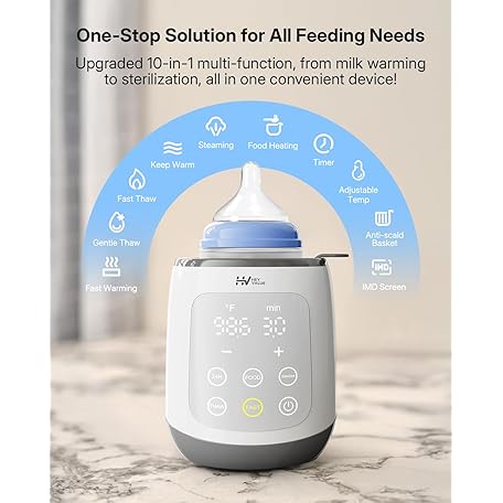 HEYVALUE Bottle Warmer, 10-in-1 Fast Baby Bottle Warmer for Breastmilk, BPA-Free Milk Warmer with IMD LED Display, Smart Temperature Control, Thaw, Keep Warm, Steaming, Food Heating, Timer
