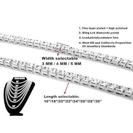 Sản phẩm HH BLING EMPIRE Gold Silver Iced Out Diamond Tennis Chain Necklace for Men Women, Rhinestone Tennis Necklaces for Women and Teens, Tennis and Cuban Link Chains 18-30 Inches đang được bán với giá ưu đãi là $13.7231 tại nước Mỹ.