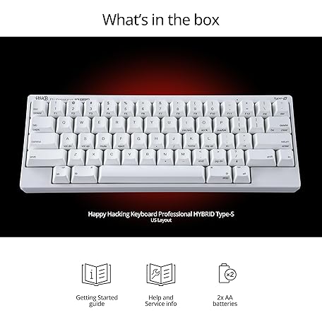 Thông tin sản phẩm HHKB - Happy Hacking Keyboard Professional Hybrid Type-S Snow (Wireless, Bluetooth, Wired, USB, Silent, Mac, Windows, White, Printed) with 2 Year Advance Exchange Warranty