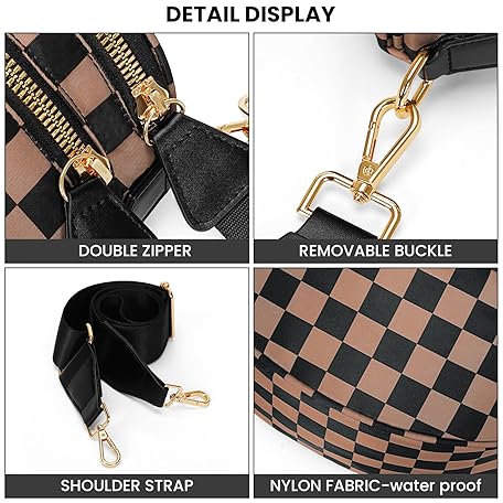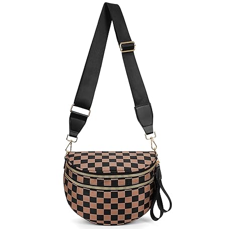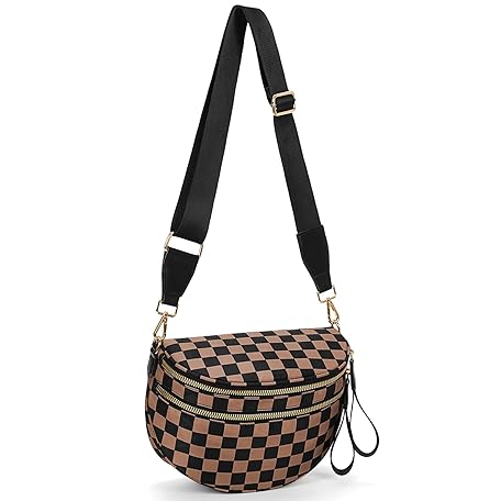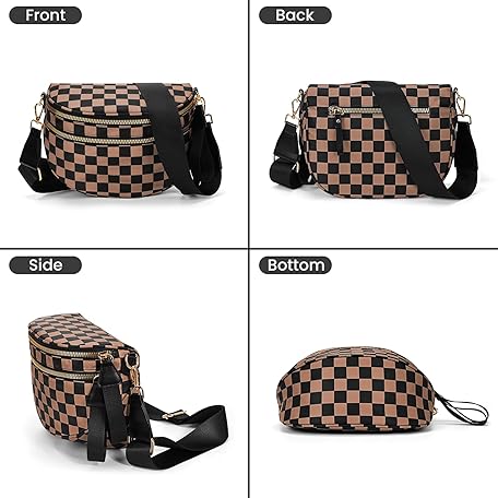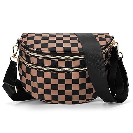 hibear Checkered Crossbody Bag Spacious Bum Bags for Women Nylon Crossbody Fanny Packs Checkered Purse Belt Wallet