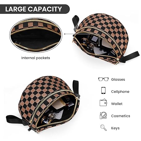 • hibear Checkered Crossbody Bag Spacious Bum Bags for Women Nylon Crossbody Fanny Packs Checkered Purse Belt Wallet