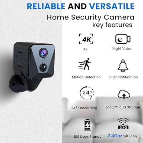 Thông tin sản phẩm Hidden Camera | Spy camera, Improved 2K WiFi Mini Camera, Real-Time View,100 Days Battery Life, Cloud & SD Storage, Clear Night Vision, AI Motion Detection, Security Wireless Camera Nanny Cam