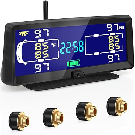Sản phẩm Hieha Tire Pressure Monitoring System, 7.84” Wireless Solar Rv TPMS with 4 Sensors for Travel Trailer Truck Fifth Wheel Motorhome, Real-time Monitoring Pressure and Temperature(0~198 PSI) đang được bán với giá ưu đãi là $108.9782 tại nước Mỹ.