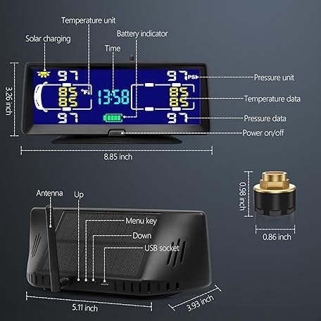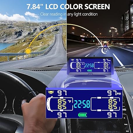 Thông tin sản phẩm Hieha Tire Pressure Monitoring System, 7.84” Wireless Solar Rv TPMS with 4 Sensors for Travel Trailer Truck Fifth Wheel Motorhome, Real-time Monitoring Pressure and Temperature(0~198 PSI)