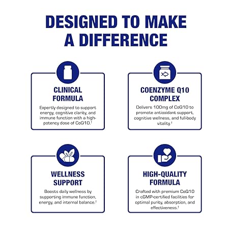 High Absorption CoQ10 100mg Softgels - Clinical Formula Coenzyme Q10 100mg for Skin Heart Energy Antioxidant and Brain Support - Easy to Swallow - Made in The USA in cGMP Facilities - 60 Servings