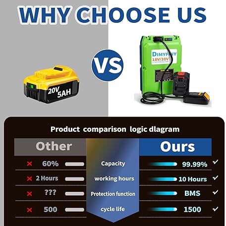 High Capacity 20V 15Ah-40Ah Max Rechargeable Battery, Compatible with DEWALT and 18V Makita Cordless Tools for Lawn Mower, Drill, Chainsaw, Trimmer, Blower
