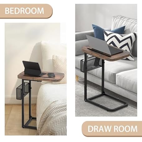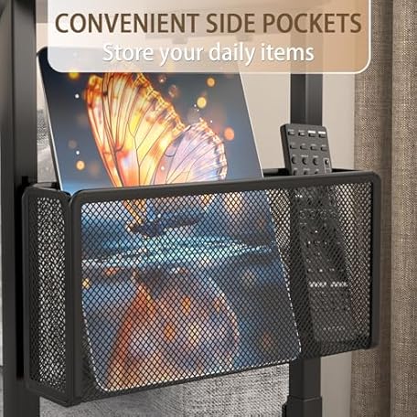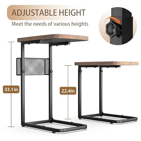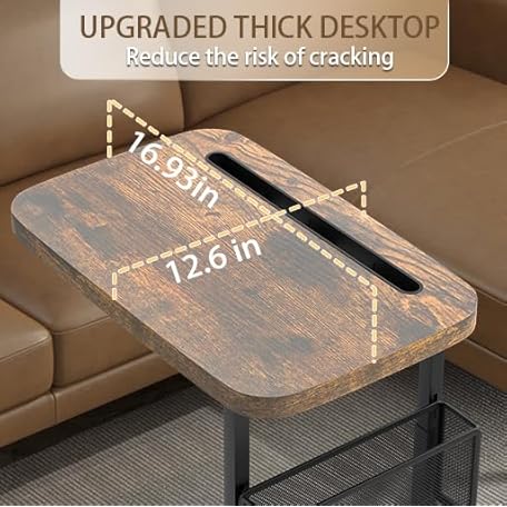 Thông tin sản phẩm High-Grade TV Tray Table with Large Tabletop, Adjustable Couch Table with Storage Baskets, Strong Metal Frame, Tv Dinner Tray Table for TV Watching, Meals, Snacks (Brown, 16.93inch x 12.6inch)