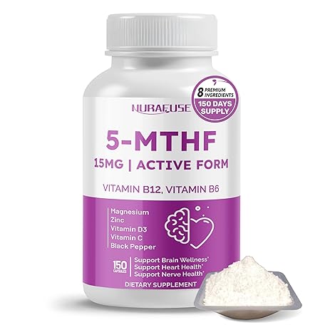 High Potency 5-MTHF (Active Form) with Vitamin B12, Vitamin B6, Magnesium & Black Pepper – Supports Brain Wellness, Heart Health & Nerve Health*
