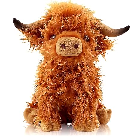 Highland Cow Stuffed Animal Toy, Cute Fluffy Highland Cow Plush Farm Cow Plushies Decor Gifts for Kids (Brown)