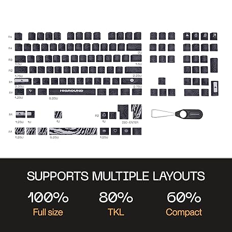 Thông tin sản phẩm Higround BLACKICE Topograph PBT Dye Sub Keycaps for Mechanical Gaming Keyboards, Full 135 Key Set, Cool Custom Side Print Keycaps for Cherry MX Switches, OEM Profile, ANSI ISO Support, US Layout