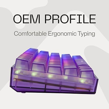 Thông tin sản phẩm Higround Crystal Amethyst Basecamp 65% Mechanical USB Wired Gaming Keyboard, White Flame Switches, Programable RGB, Transparent/Translucent, Hot-Swappable, Deep Thock Creamy Sounding PC Keyboard