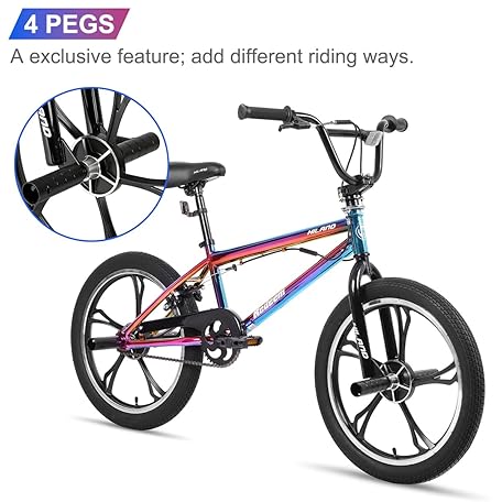 Hiland 20 Inch 3 5 Spoke Kids BMX Bike for Boys Girls Ages 5-12, 360 Degree Rotor Freestyle, 4 Pegs Single Speed Kid’s BMX Bicycle, Multiple Colors