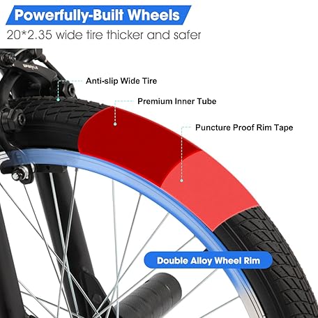 Thông tin sản phẩm HILAND 20 inch Kids BMX Bicycle for Boys Girls Age 5-12 Years Old, 360 Degree Gyro & 4 Pegs, Kids Bike for Beginner-Level to Advanced Riders, Multiple Colors