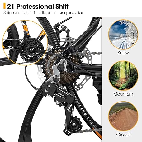 HILAND Mountain Bike, 3/6/Multi-Spokes, 21 Speeds Drivetrain, Aluminum Frame 26 Inch Wheels, Disc-Brake Bike for Men Women Men's MTB Bicycle