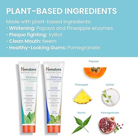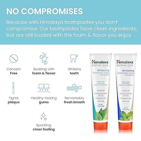Thông tin sản phẩm Himalaya Botanique Whitening Complete Care Toothpaste, Mint and Peppermint Flavors - Whitening Toothpaste Without Fluoride for Brighter Teeth & Fresh Breath - Vegan, Gluten Free, 5.29 oz (Pack of 2)
