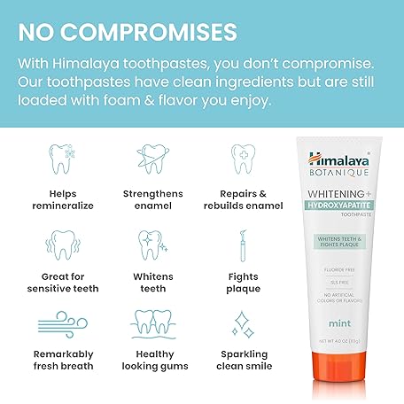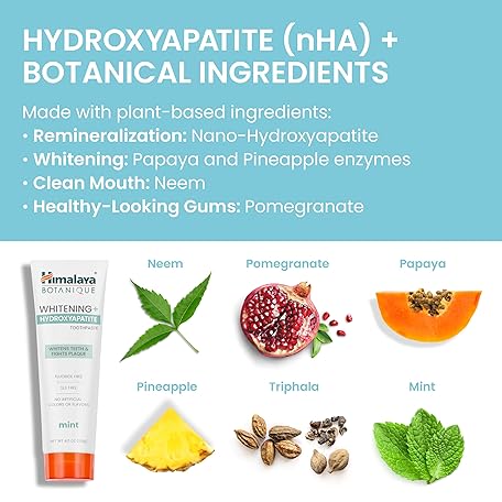 Thông tin sản phẩm Himalaya Botanique Whitening + Hydroxyapatite Toothpaste, Mint Flavor - Nano Hydroxyapatite to Support Remineralization and Restore Enamel to Strengthen Teeth - Vegan, Gluten Free, 4 oz (Pack of 2)
