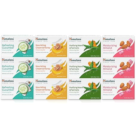 Thông tin sản phẩm Himalaya Cleansing Bar Soaps Variety Pack, Neem & Turmeric, Almond, Cream & Honey and Cucumber, 4.41 oz, 12 Pack