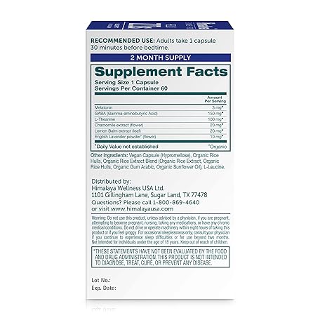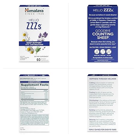Thông tin sản phẩm Himalaya Hello ZZZs, 60 Day Supply - Herbal Sleep Supplement with Melatonin, GABA, L-Theanine, Lavender, Chamomile and Lemon Balm - Vegan, Non-GMO, Gluten Free, 60 Capsules