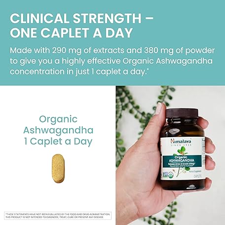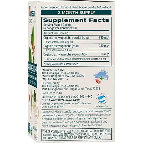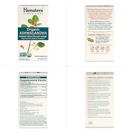 Thông tin sản phẩm Himalaya Organic Ashwagandha Root, 120 Day Supply - Herbal Adrenal Support Supplements for Stress Relief and Energy Support - USDA Organic, Non-GMO, Vegan, Gluten Free, 60 Caplets, 2 Pack