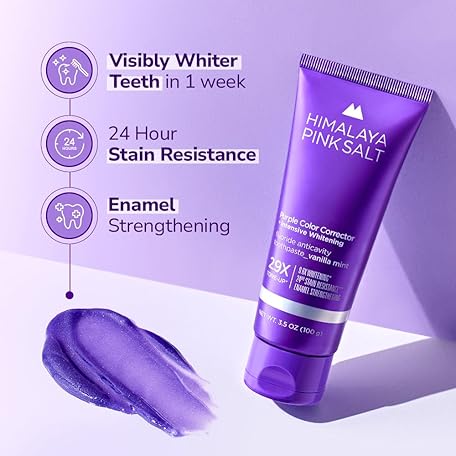 Thông tin sản phẩm HIMALAYA PINKSALT Purple Whitening Toothpaste - Teeth Whitening, Deep Stain Remover with Fluoride, Plaque Remover, Appropriate for Sensitive Teeth, Peroxide Free - Vanilla Mint, 3.5 oz