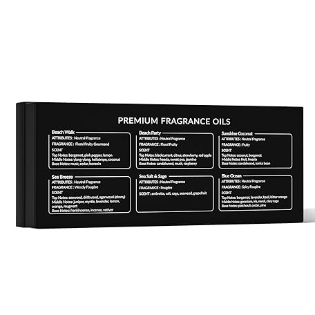 Thông tin sản phẩm HIQILI Fragrance Oil, Gold Coast 6x10ml for Candle Scents Making, Scented Oils for Soy Candles Soap Slime Aromatherapy Diffuser, Premium Grade Essential Oil Set for Christmas Holiday