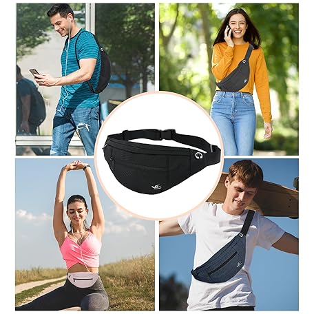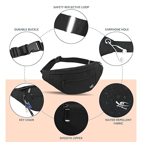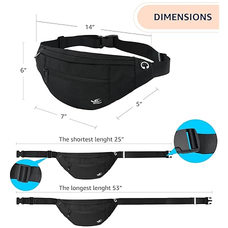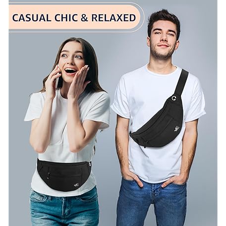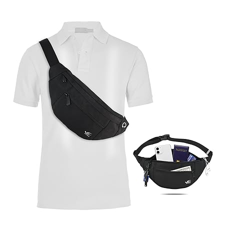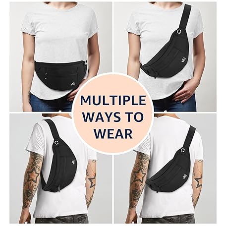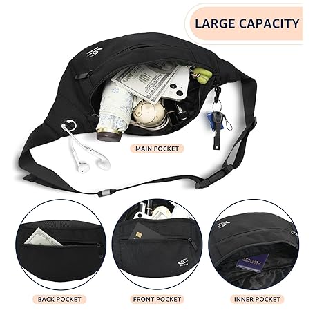 HiRui Large Crossbody Fanny Pack for Men Women Waist Bag Pack with 4-Zipper Pockets Phone Bag Fits All Phones Wallet Keys, Casual Hands-Free Waist Pack for Travel Workout Running (Black)