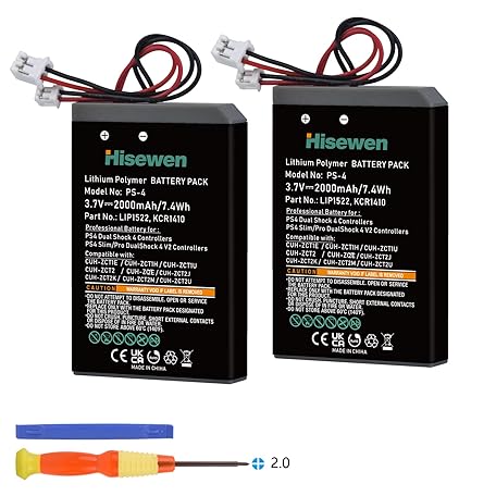 Sản phẩm Hisewen 2 Pack 2000mAh PS4 PS4Pro Controller Battery Replacement for Sony PlayStation 4 Dualshock 4 V1 V2 Controller CUH-ZCT2 CUH-ZCT2E CUH-ZCT1E CUH-ZCT1U đang được bán với giá ưu đãi là $9.7991 tại nước Mỹ.